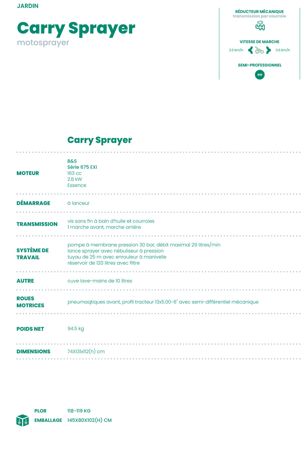 Pulvérisateur CARRY SPRAYER Moteur B&S 675 Series Eurosystems - Made in Italy