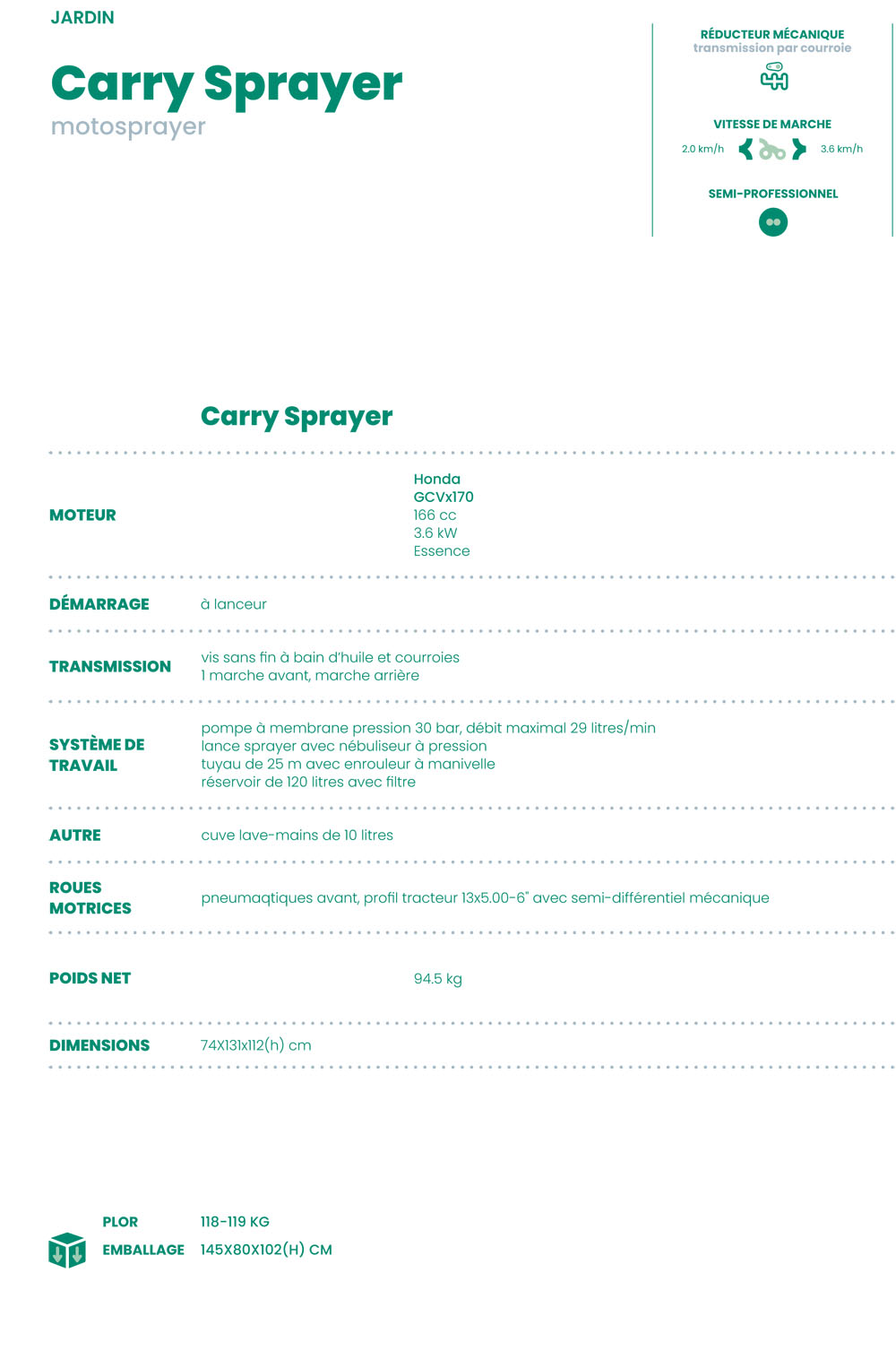 Pulvérisateur CARRY SPRAYER Moteur Honda GCV 170 Eurosystems - Made in Italy