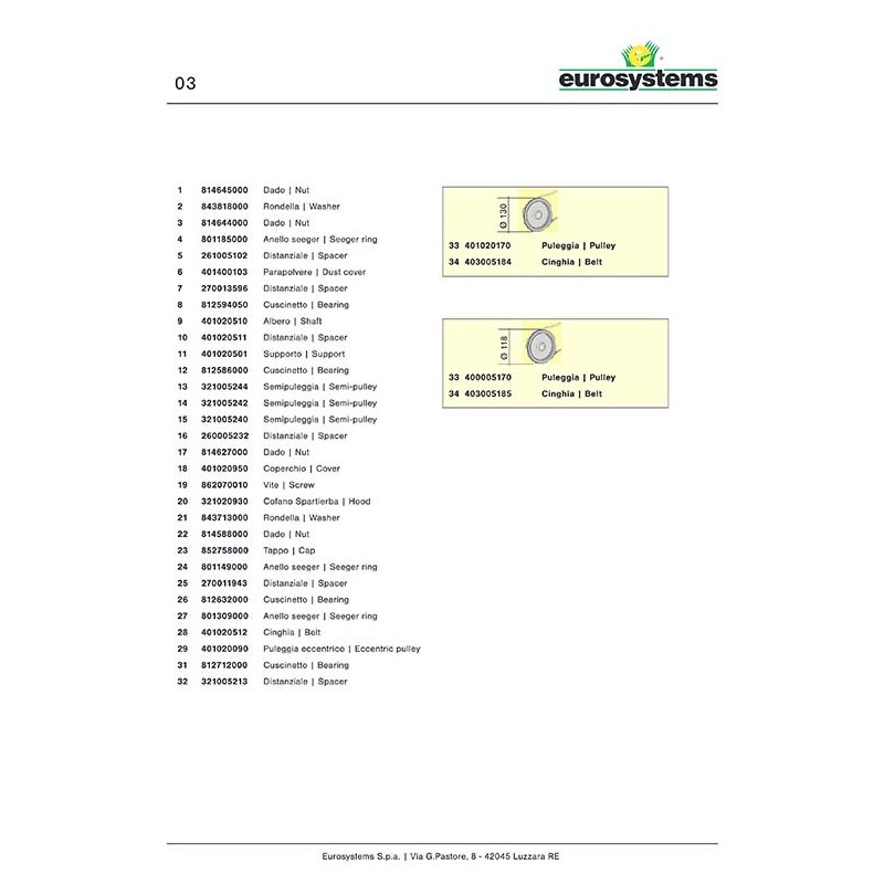 Poulie pour Barre de Coupe P 70 EVO Eurosystems