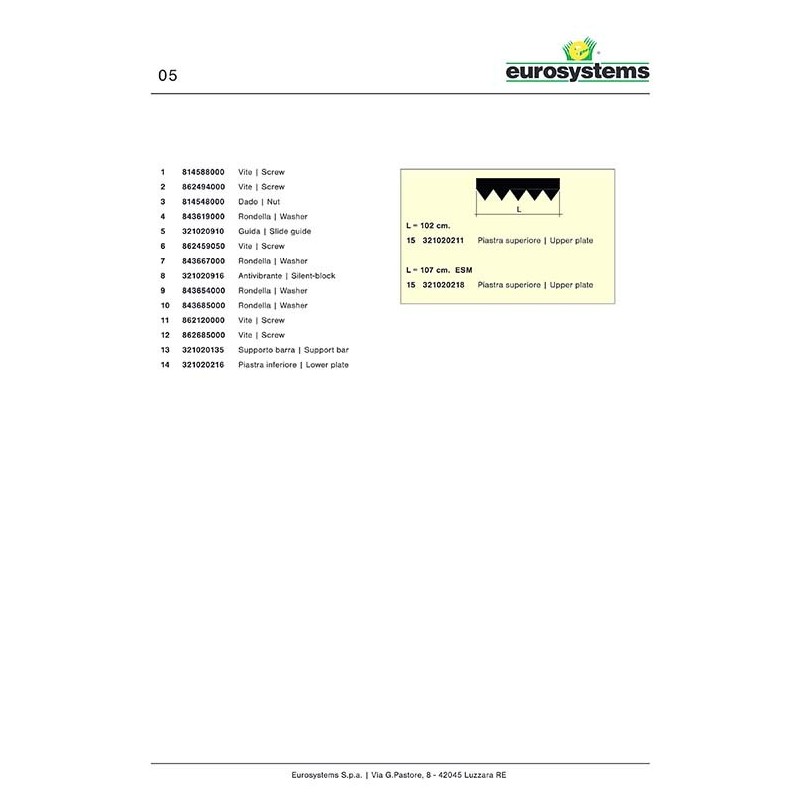 Couteau pour Barre de Coupe P 70 EVO Eurosystems