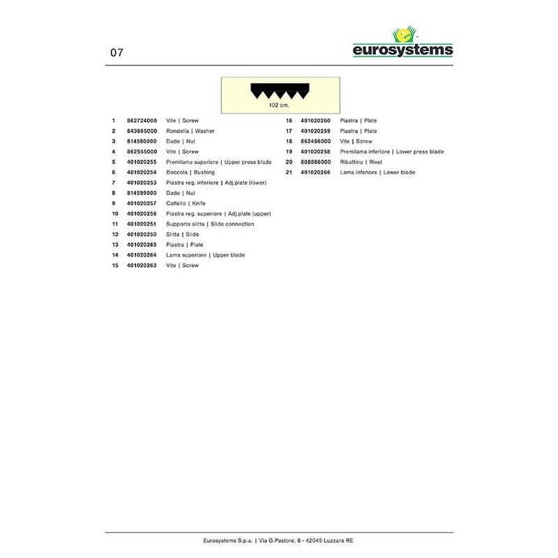 Corps de Barre de Coupe P 70 EVO Eurosystems