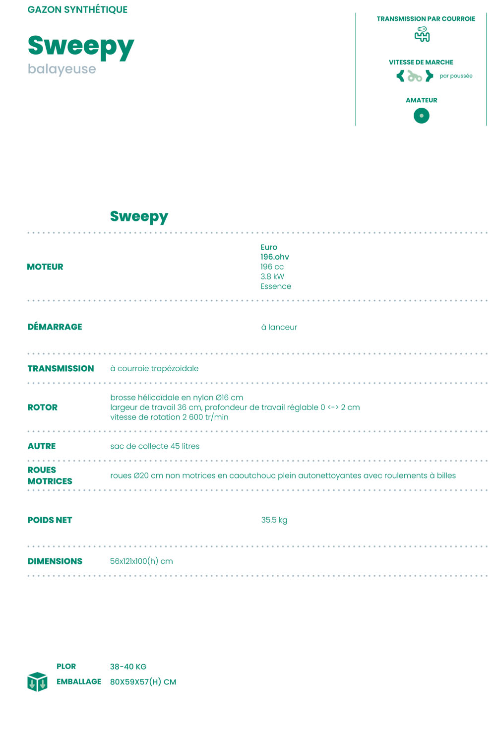 Motobalai Gazon Synthétique SWEEPY Moteur Loncin 196 OHV Eurosystems - Made in Italy