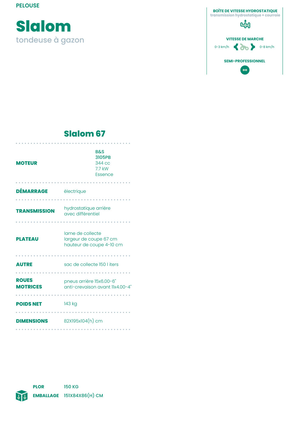 Rider SLALOM 67 Moteur B&S Eurosystems - Made in Italy